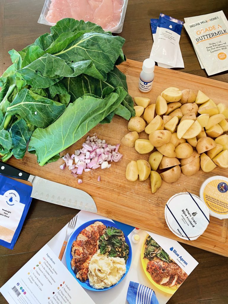 It was delicious! We made Harmonic Pan-Roasted Chicken and Honey Mustard paired with Buttermilk Mashed Potatoes and Collared Greens using the step-by-step Blue Apron recipe card. The recipe coupled with the fresh ingredients delivered to our doorstep made the whole process of making this dish a breeze! It tasted like elevated comfort food on a plate and we were all about it.