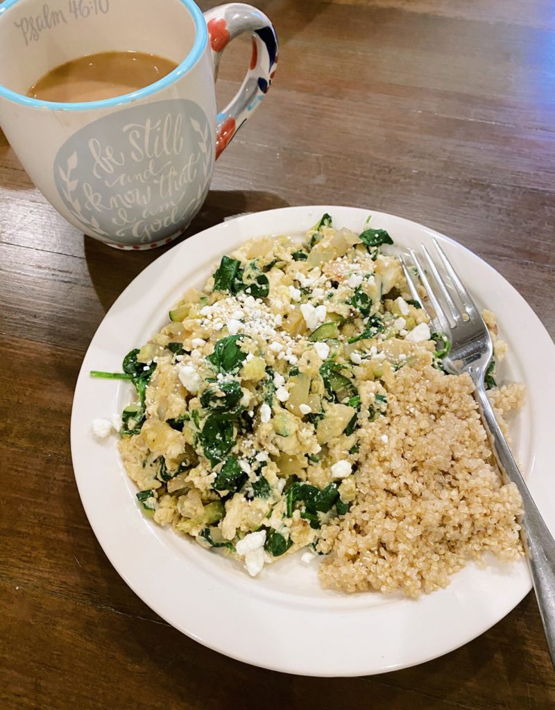 Thankfully I was able to get a nourishing breakfast on my plate yesterday morning thanks to a little meal prep I did over the weekend. Chopping veggies and cooking a large batch of quinoa made this plate an easy one to assemble before Chase and Ryder were up for the day.
