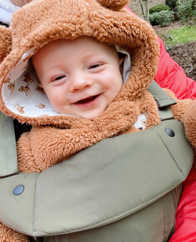 The big boys in their Jeep + Rhett in his baby carrier is currently my favorite way to get out and about with all three kiddos. We’ll also do bike rides now that Ryder has his own bike but Ryder is quickly becoming very speedy which makes it hard for me to haul hiney after them with Rhett strapped to my chest.