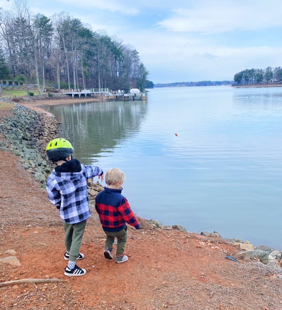 We ended up stopping more than a few times on our adventure so the boys could look for fish and throw rocks in the lake and also play at the park in our neighborhood before lunch. Ryan also met us at the park during a short lunch break which was a highlight of the early afternoon for sure!