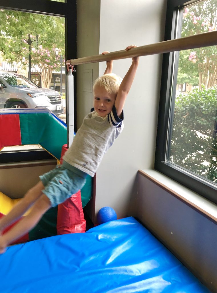 Since the boys were clearly in a playful mood, I figured they’d have fun at My Gym’s open gym time yesterday evening, so we spent nearly an hour there as the boys burned off some energy.