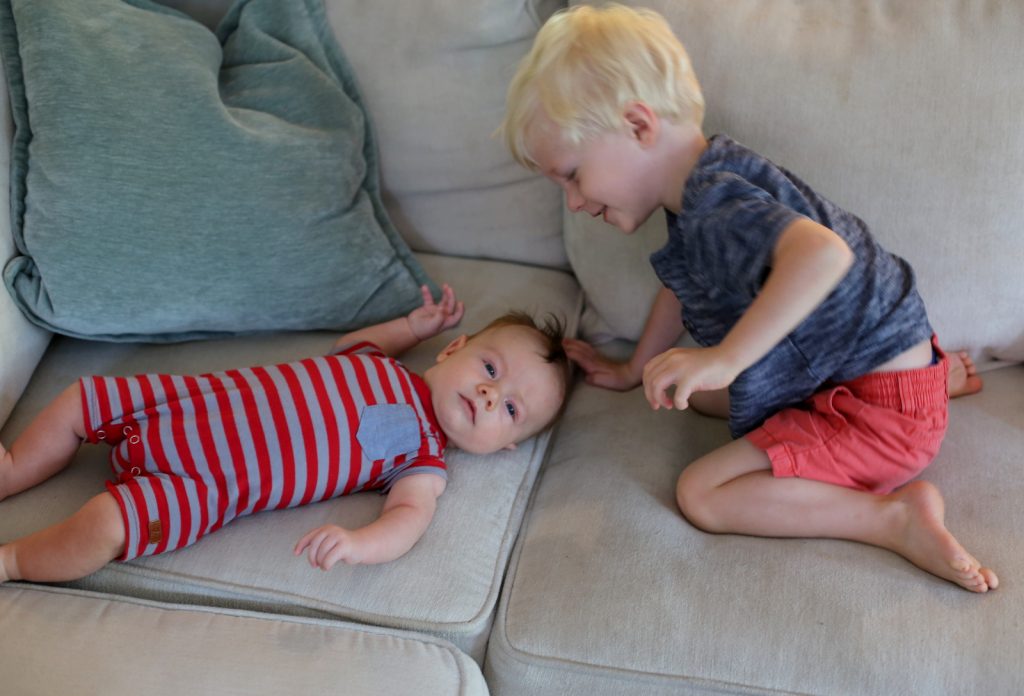 Chase loves incorporating Ryder into imagination games and enjoys trying to “teach” him things as well as dancing for him and making silly voices to try to get Ryder to smile, coo and chirp. Chase gives Ryder kisses all the time and talks about being a big brother in a very positive way when people ask him about his little brother which melts my heart. Ryder is enamored with Chase and stares at him all the time! Overall, Chase has absolutely exceeded my expectations and handled the transition really well and we try really hard to praise Chase for his kind, inclusive, gentle and positive behavior around his little brother.