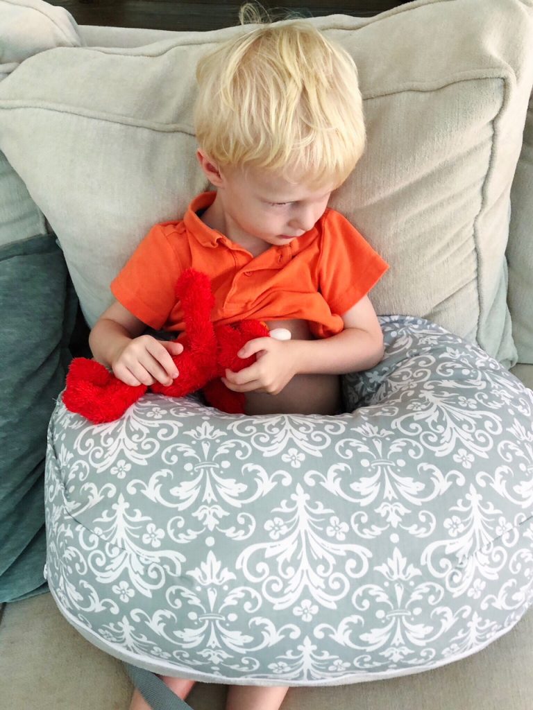 Chase is incredibly curious and interested in just about everything in the world and nursing is no different! I’ve tried my best to explain nursing to him in a way he can understand and he seems to get it. When it came time to talk to him about nursing, I took a similar approach to the one I used to explaining potty training and his questions about private parts. I try my best to be as accurate and open as possible and use proper names for everything. Even though Chase says milk comes out of Mom’s “nibbles,” I think he gets it and he will often tell me that Ryder “needs some milk” when he gets fussy. I let him watch and sit next to me if he wants to but usually he gets bored and wanders off to play with his toys.