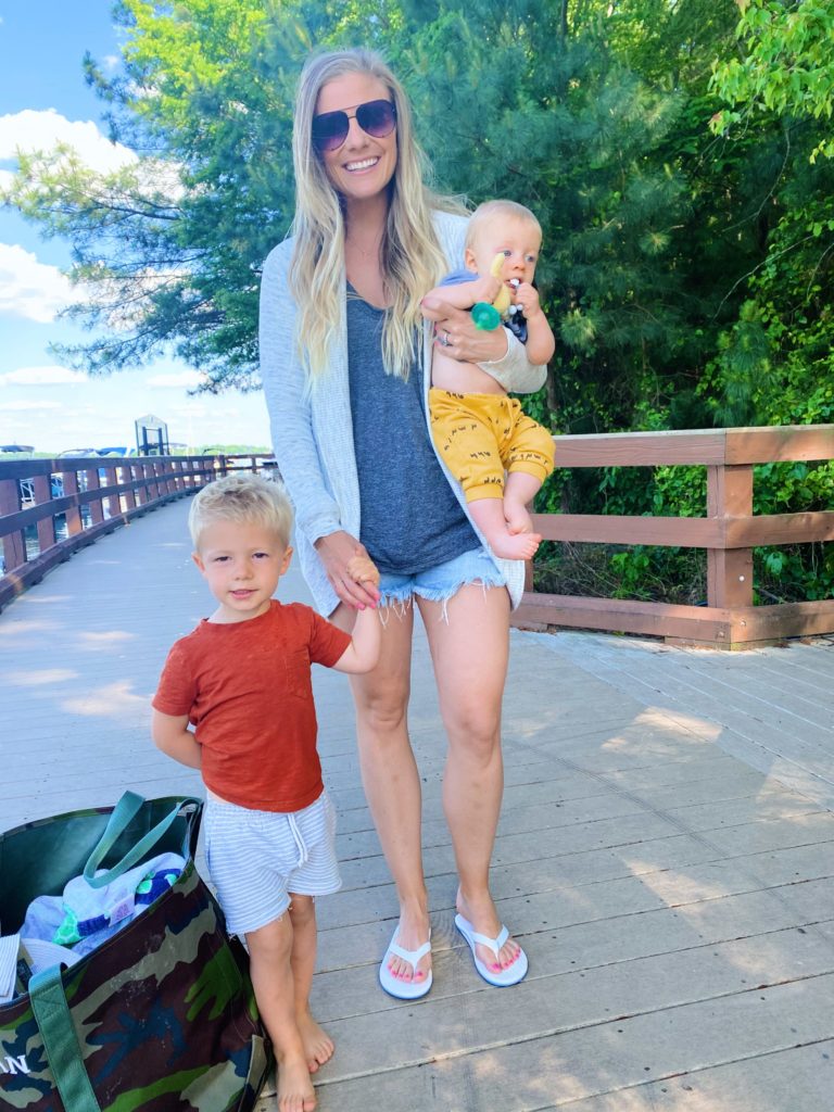 Sunday morning began with a long walk around the neighborhood with the boys and Sadie. By the time we arrived back home, Rhett was ready for his morning nap and once I had him settled, I ran out to work on some content for an upcoming Instagram collaboration. I made it home right after Rhett awoke — it was truly perfect timing! — and I nursed him before before we got everything ready for some afternoon fishing and swimming in the lake.