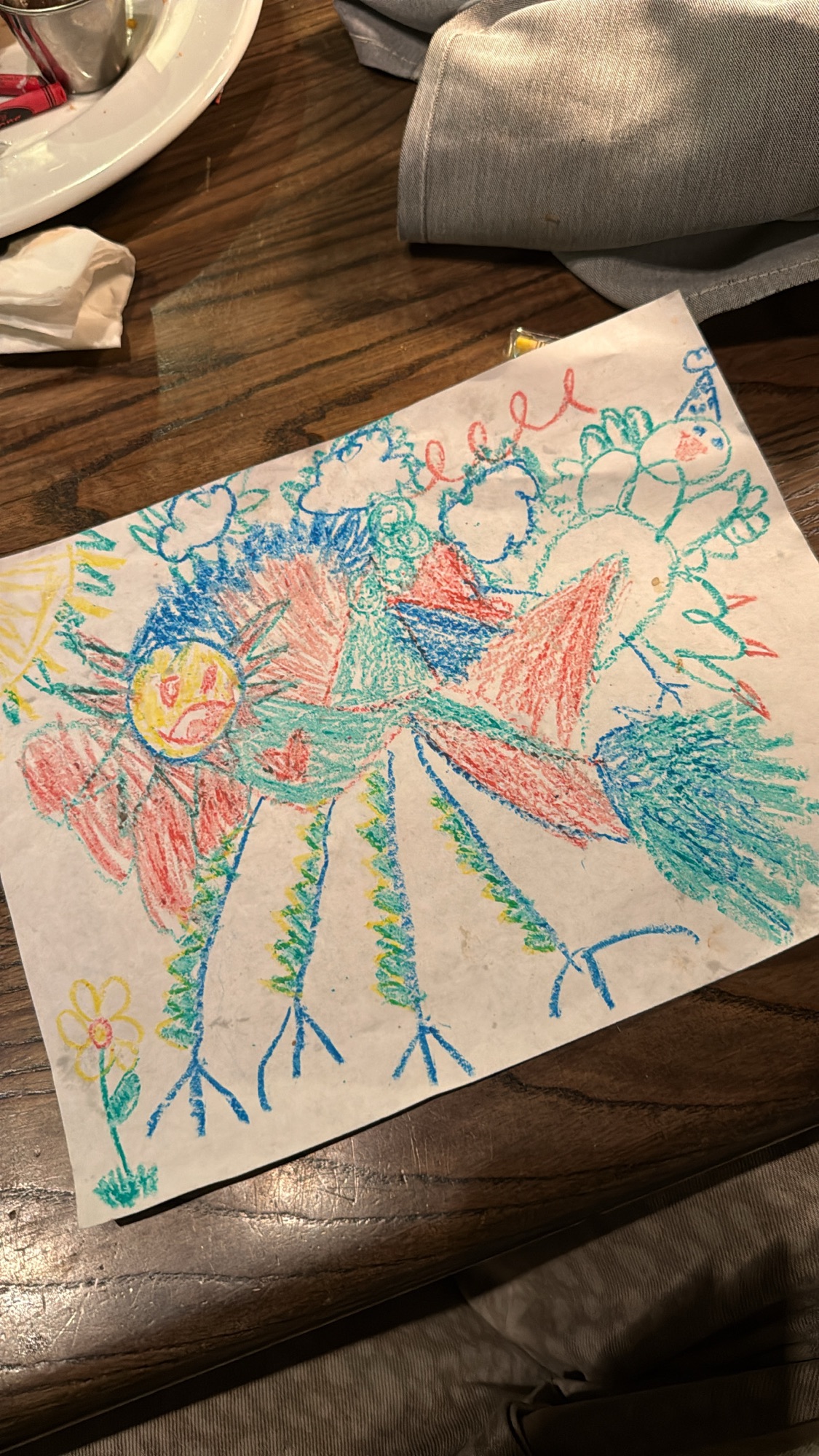 I just wanted to share this super simple activity that our whole family enjoyed during one of our meals out in Asheville since it would be so easy to recreate! On the back of one of the boys’ coloring sheets they got at Chestnut in Asheville, we played build-a-monster. I started by drawing a circle for a face and then we passed it around from person to person and everyone added something to our monster. Toward the end, it got hard to tell what the previous person added which actually added to the fun because then we had to guess what the person before us added to the monster!