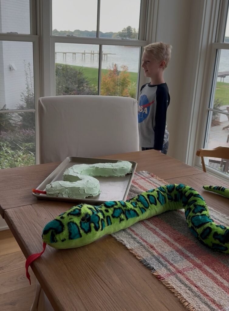 Our family looks forward to our weekend movie nights all week long. We love curling up on the couch together to watch a movie or a show and Is It Cake? on Netflix is one of our absolute favorites. Contestants compete to try to make cakes realistic enough to fool a panel of judges and we get such a kick of out trying to guess which creation is cake. (The talent level on this show is out of control!) Last weekend, the boys wanted do their own version and made a snake cake to try to fool their faux panel of judges (each other). We all ended up having so much fun with it!! And now we cannot wait for the Halloween special of Is It Cake? that comes out October 8!