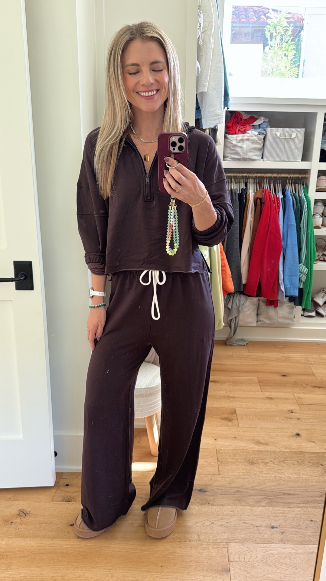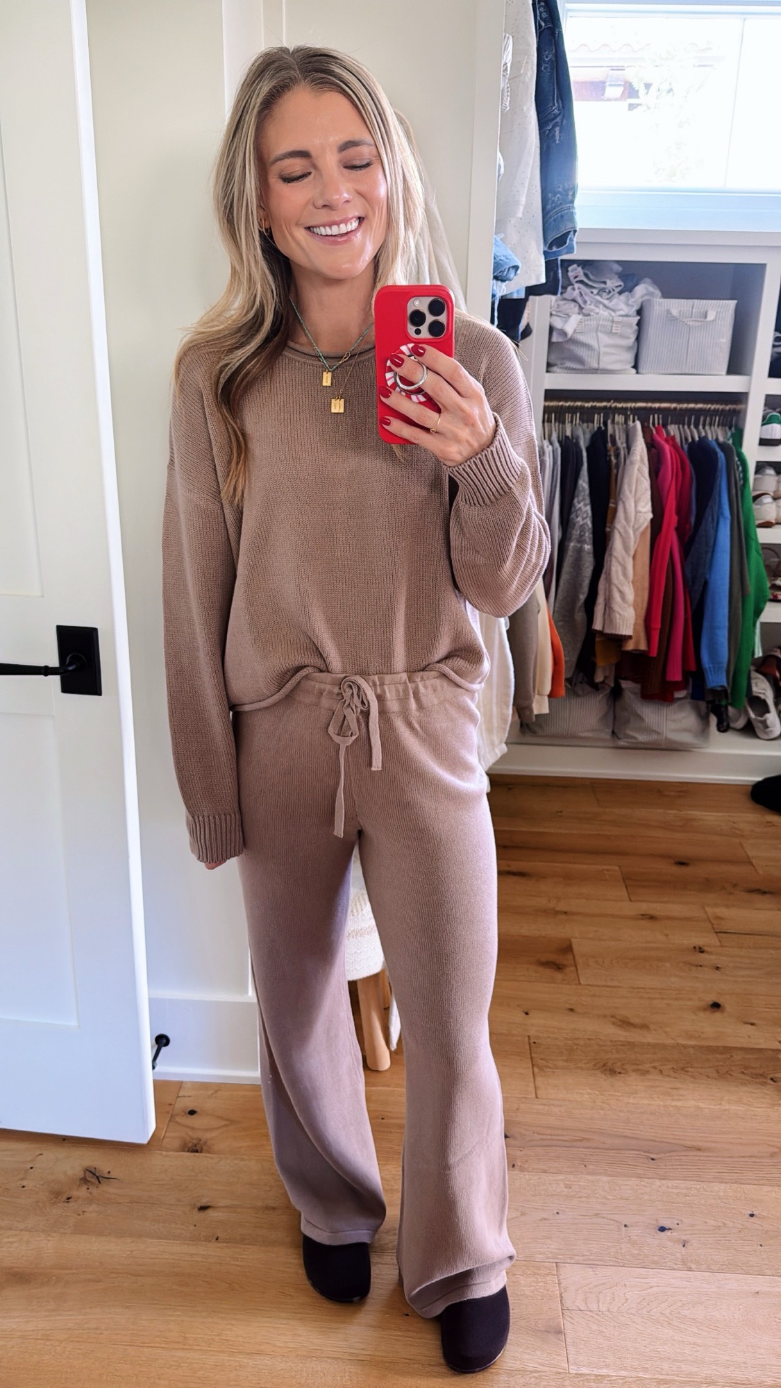 Outfit Details: Matching Sweater Set: Organic Basics (Top + Bottoms / I sized up in both pieces) / Clogs: Rothy’s