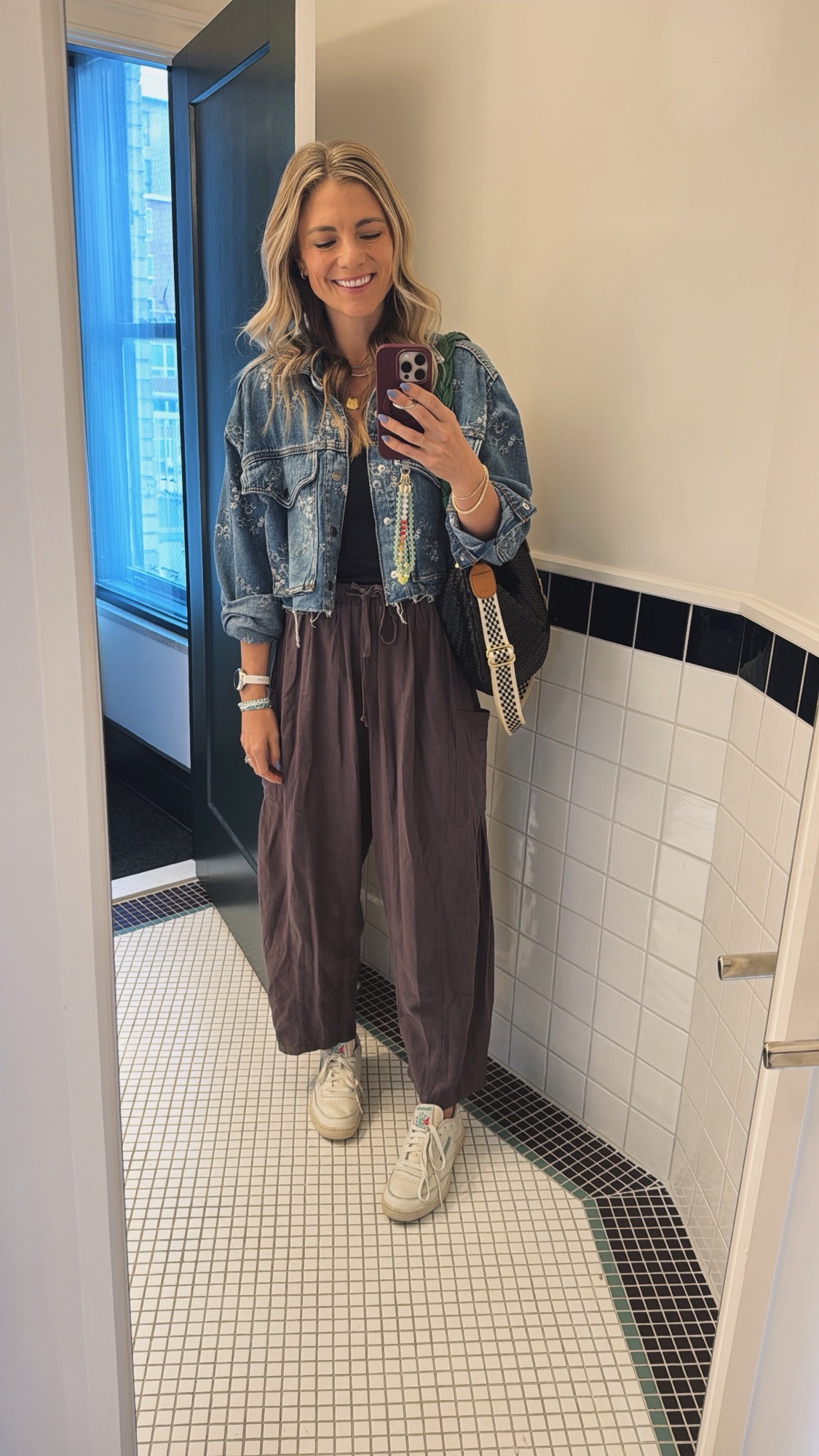 Outfit Details: Pants: Amazon / Bodysuit: Nuuds (code JULIEF10 saves 10%) / Denim Jacket: Anthropologie (old but linking it in case you want to find it re-sale) / Sneakers: Reebok (the “top chalk” color is so comfy — I’ve walked 20k steps in one day in them with zero issues!) / Bag: Clare V. /