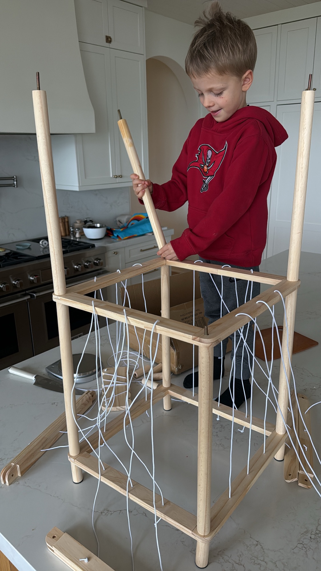 Another thing that was satisfying? Stuffed animal organization! Rhett and I built a bungee tower to hold all of his stuffed animals. It was the kind of simple project that’s repetitive enough for a kid to actually “help” which made it a fun project for us to do together.