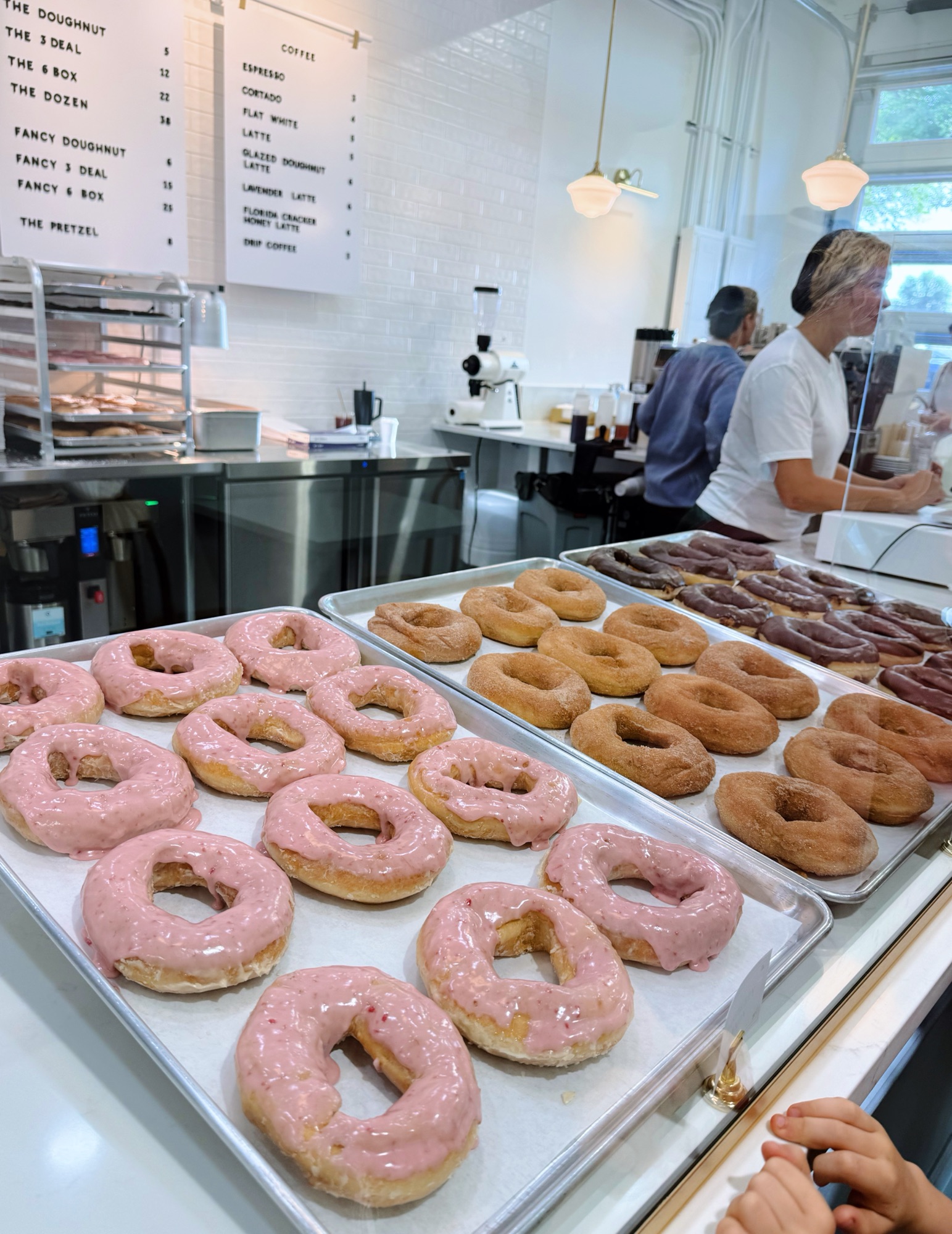 Our family loves scouting out local doughnut gems when we travel (mainly because we’re awake so early and they’re often the only places open before 8 a.m. — but also because we love doughnuts) and when Diane raved about Peachey’s, we knew we had to give it a try.