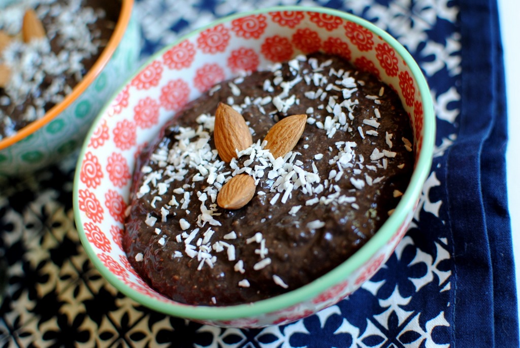 Though most chia seed pudding recipes require a few hours of refrigeration to thicken, this is one you can eat instantly (though you may also allow it to thicken in the fridge for a little longer if you prefer). Whether you make it ahead of time or right before you’re ready to eat, the rich chocolate flavor and hint of coconut will remind you of an Almond Joy candy bar!