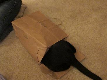 My cats love to go in brown paper bags. We leave one out in the living room for them. I don’t get the fascination. When I come home from the store, the sound of a brown paper bag gets one of our cats so excited.