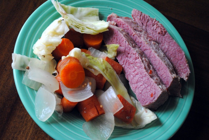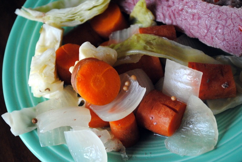 Our traditional St. Patrick’s Day dinner was postponed until this evening because we ended up going out of town for the weekend, leaving the corned beef and cabbage untouched in the fridge.