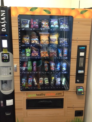 The snacks and drinks available in this vending machine were significantly healthier than typical vending machine fare. I saw unsweetened green tea, flavored water, nuts, pita chips and more. Love this!