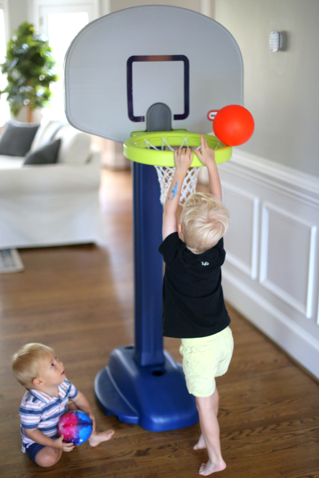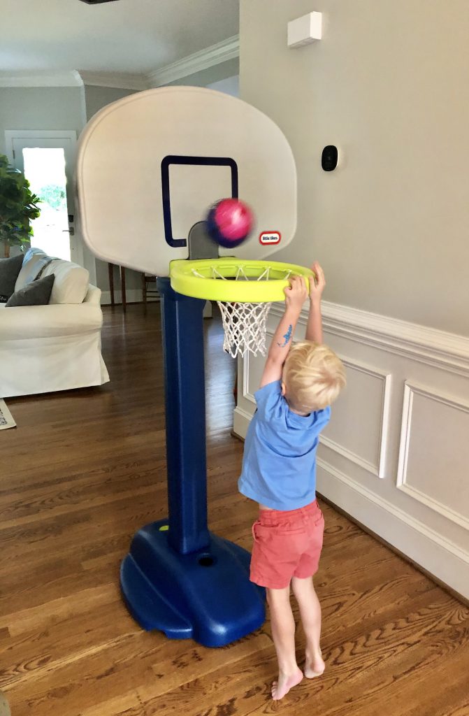 We headed home after My Gym and spent the rest of Chase’s fourth birthday eating cake and playing with the adjustable height basketball hoop birthday present Mae and Pop sent his way!
