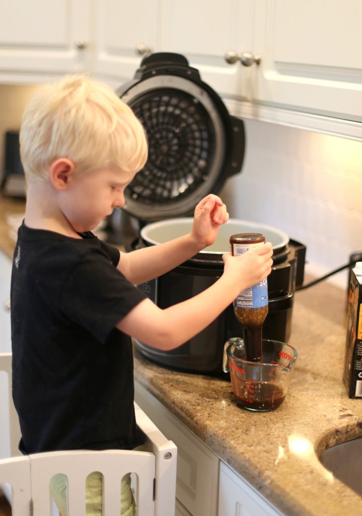 We spent the rest of the afternoon at home with Granddad and in between playtime, Chase helped me prep dinner while Ryder snacked on some mango.
