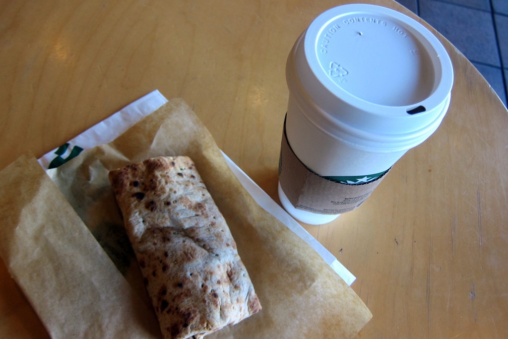 Starbucks has AMAZING food! I know not all of it is necessarily “healthful” but man, do they know how to make it! From the picture I assume you got the spinach wrap…good choice!