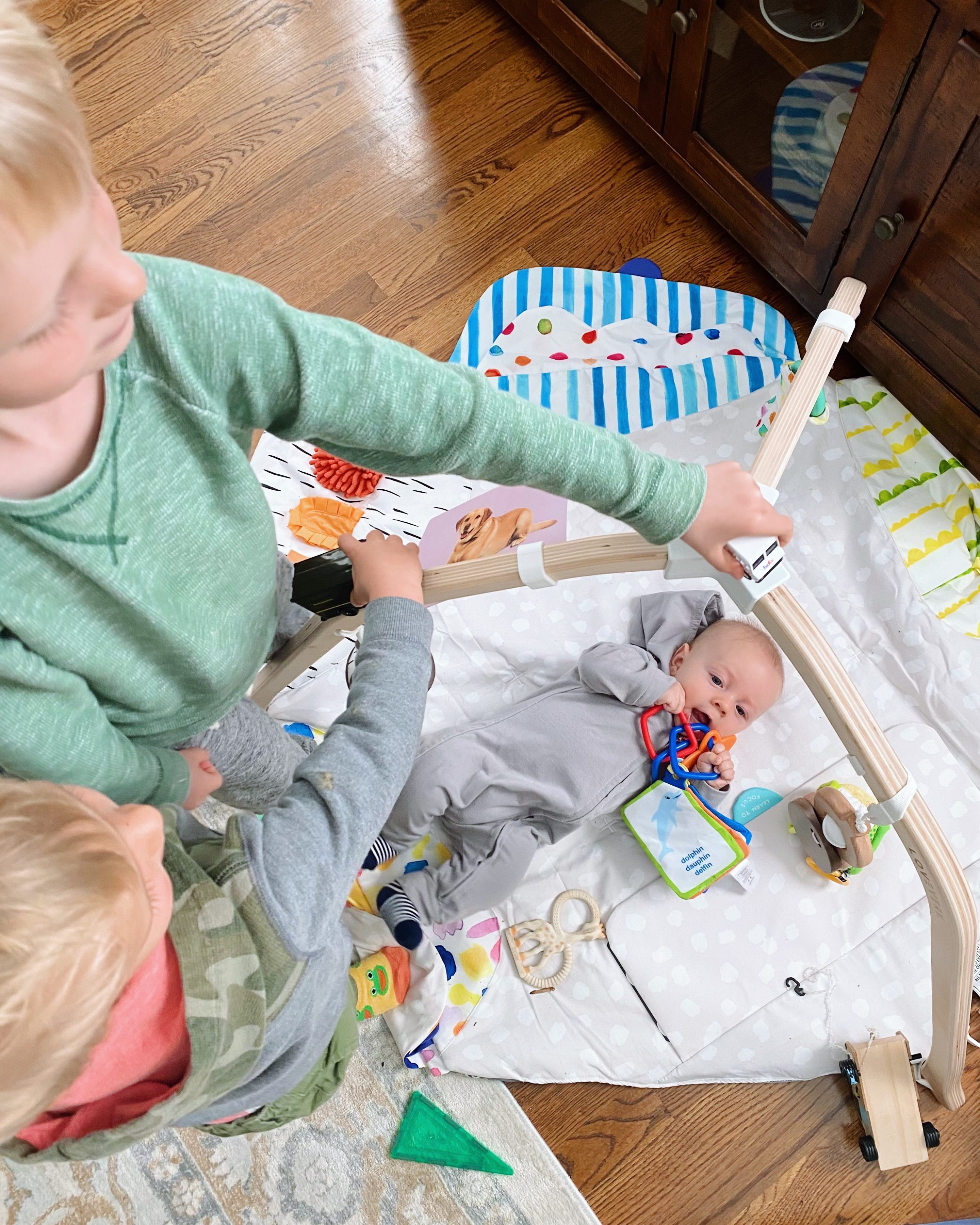 (Rhett’s play mat has quickly morphed into a skyway bridge for Chase and Ryder’s cars.)