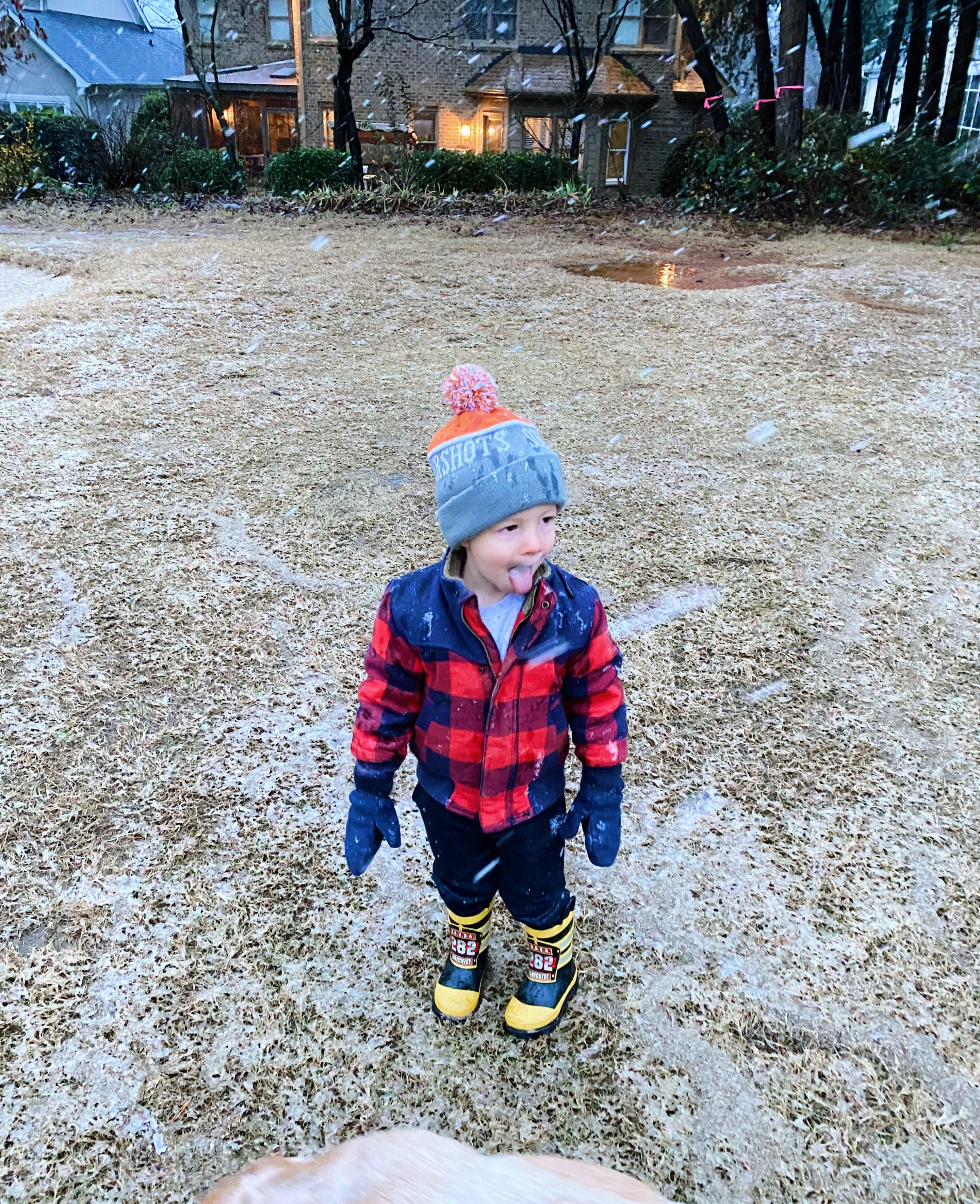 We had a great weekend. We live in Austin, TX and got 3 inches of snow yesterday! That is extremely rare – it snows about every 3-4 years here. It was so fun. Our little one is 2.5 years old, so this was his first time seeing snow. He was both confused by it and enjoyed it.