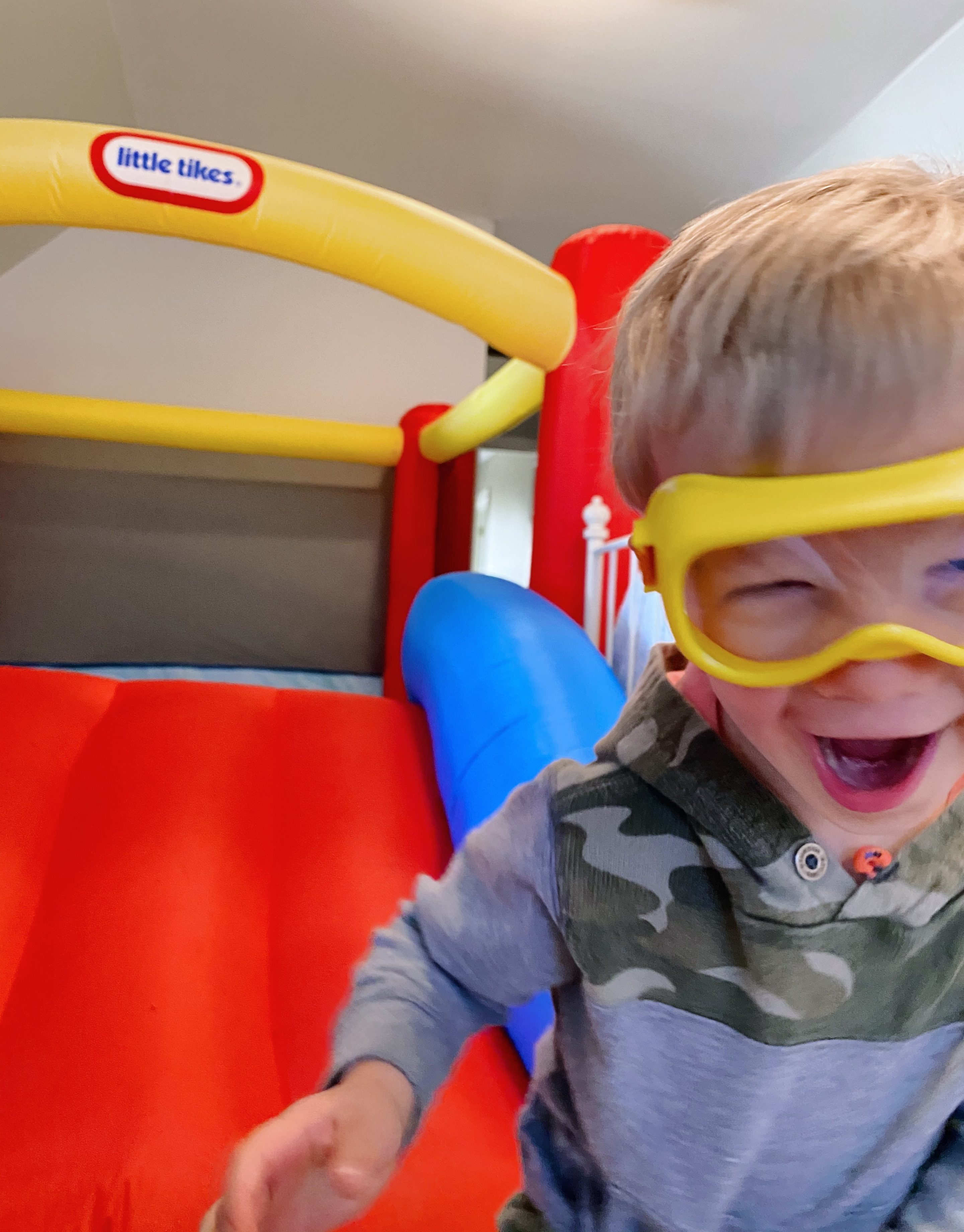 While Rhett napped on Saturday morning, Ryan and I played with Chase and Ryder while they jumped around in the bounce house — and by “played” I mean we smacked inflated beach balls at them while they tried to jump out of the way which was way too entertaining.