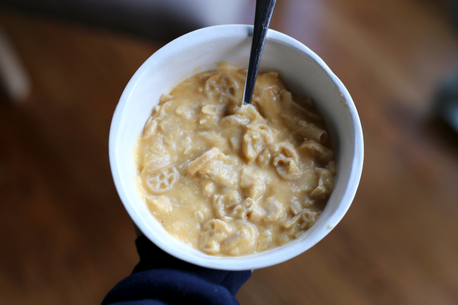 I was craving something warm and comforting on Friday night and whipped up this mac and cheese for our crew. The sauce is actually made with a combination of pureed butternut squash, caramelized onions, milk, salt and chicken broth mixed with shredded cheese and was creamy, buttery, smooth and pretty much perfect. The only thing that left me baffled was just how much sauce it made! I followed the recipe — and it has tons of positive reviews — but I had a ton of sauce in the end that pretty much drowned our pasta. To make the recipe easier, I actually used frozen cubed butternut squash rather than chopping my own squash up and I also used two different kinds of pasta (pasta wheels and penne rather than the elbow macaroni because that’s what we had), but I cannot imagine it made that much of a difference? I even ended up saving some of the sauce to use for leftovers another night! The bottom line: We liked this recipe but next time I’ll definitely double the pasta portion knowing we’ll have plenty of sauce to cover the noodles.