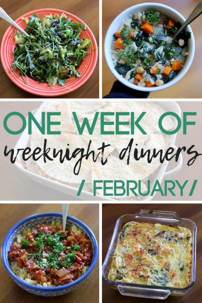In keeping with the debut of this series on my blog last month, today I’m sharing my February edition of ‘A Week of Weeknight Dinners.’ Now that this is the second month I’m assembling this kind of blog post, I think it’s interesting to see how I get into various kicks with our meals. Last month I was clearly into warm and hearty soups and meals in bowls and this month I was all about exploring more meat-free recipes and really fell in love with lentils all over again.