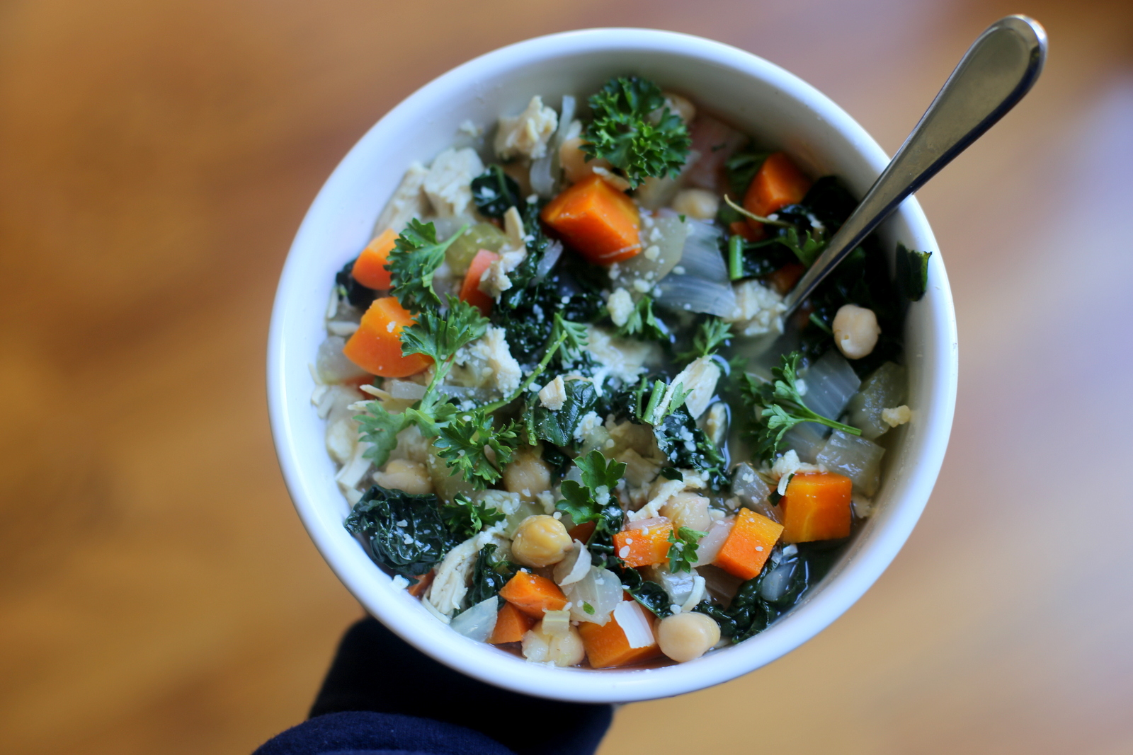 Cookie & Kate’s blog is obviously incredibly popular so I’m not sure why it took me so long to stumble upon it, but now Kate’s blog is one I check regularly for delicious, whole food vegetarian recipes. After several weeks of warm and hearty evening meals, I found myself craving a crispy crunchy salad for dinner and this recipe for a lemony arugula and lentil salad called to me. I loved the way it incorporated roasted vegetables in a way that made the salad still feel a little wintery but the punch of flavor from the lemon Dijon dressing gave the salad a light and bright flavor. We’ve also been on a huge lentil kick in our house lately, so this recipe was right up our alley! I will add that Ryan said this recipe “tasted healthy” which he didn’t necessarily mean as a glowing compliment but also not as a knock on the recipe… just that it tasted very “green,” so do with that what you will. Ha! We ate our salads with bowls of the leftover slow cooker chicken stew (above) and thought it was a delicious soup-and-salad combo.