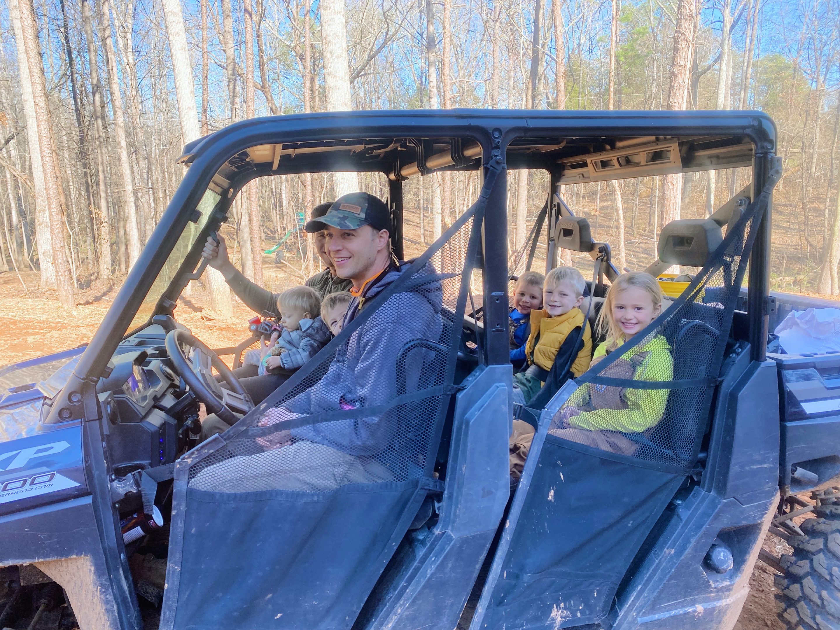 Our next adventure of the day took our whole gang to our friends’ Carrie and Nick’s new property — fondly referred to as “Muddy Mountain” by the kids since they have an epic pile of dirt to crawl all over right now. Carrie and Nick are also in the middle of building a home and it’s been really nice to have good friends going through this process as the same time as us since it’s a giant learning curve for all of us!