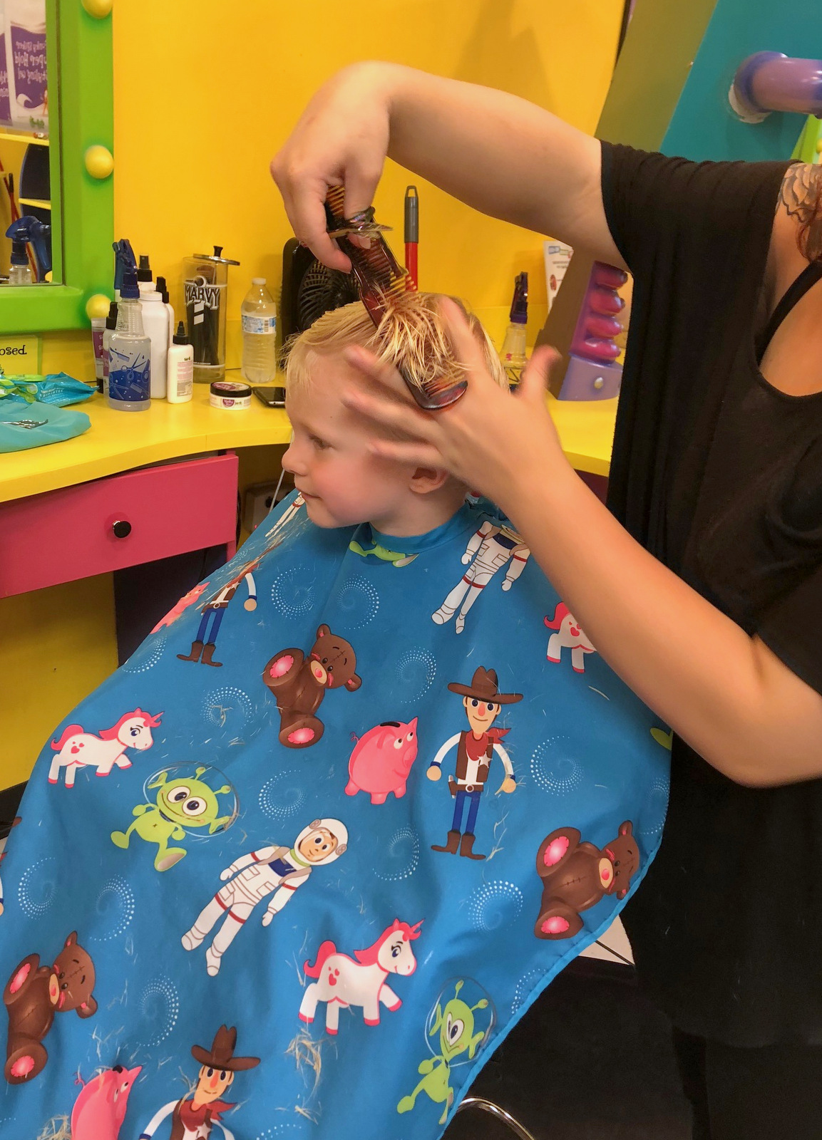 Chase earned a lollipop after his haircut — blue, of course — and left Snip-Its looking at least five years older. How does that always happen after a haircut!?