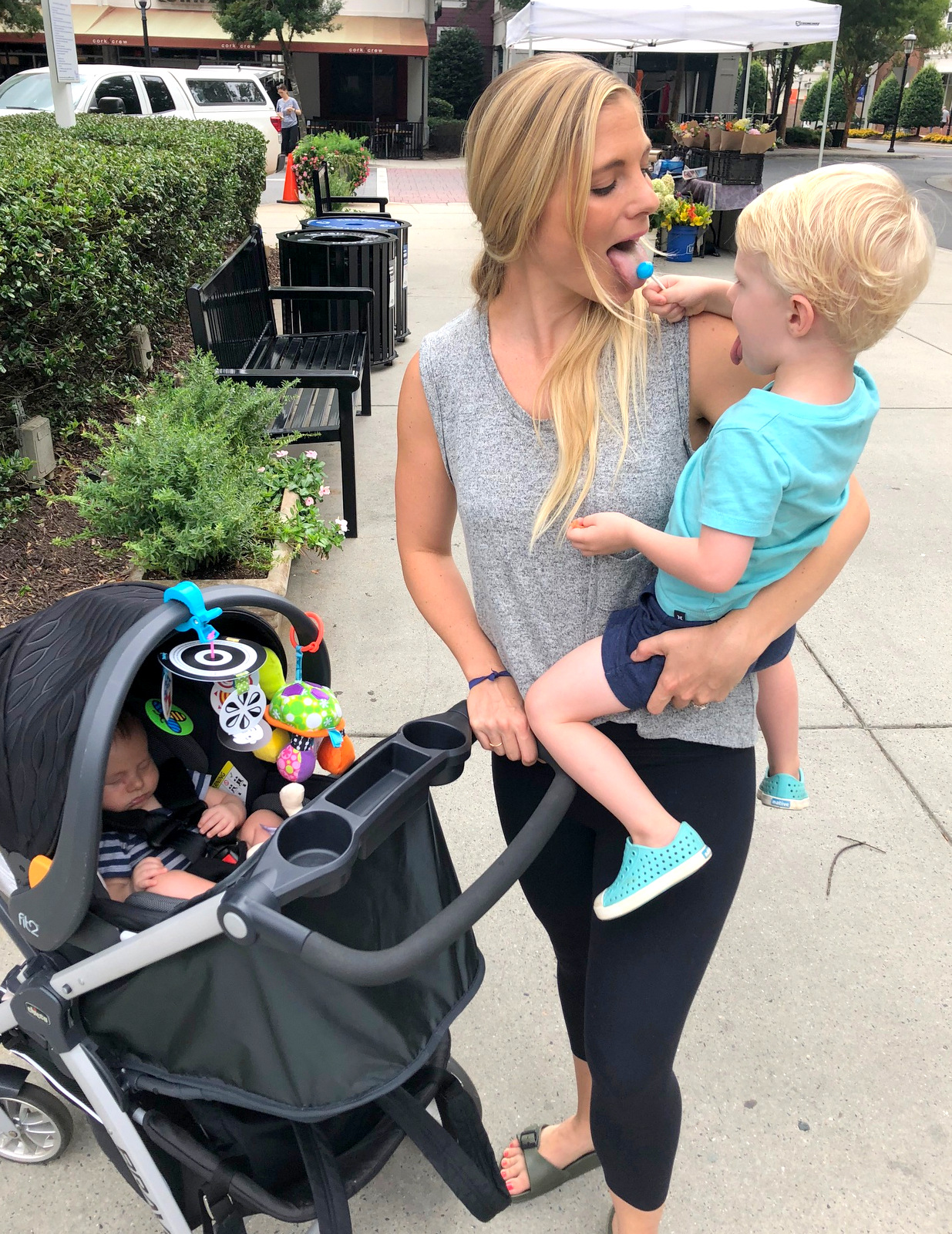 Once we made it home, we ate an early lunch and then headed out for a quick walk with Sadie around our neighborhood before Chase’s nap. Ryder snoozed the whole time and it felt so nice to be outside! Temperatures hovered in the low 80s so it wasn’t as hot as it has been around here lately which felt like a treat!