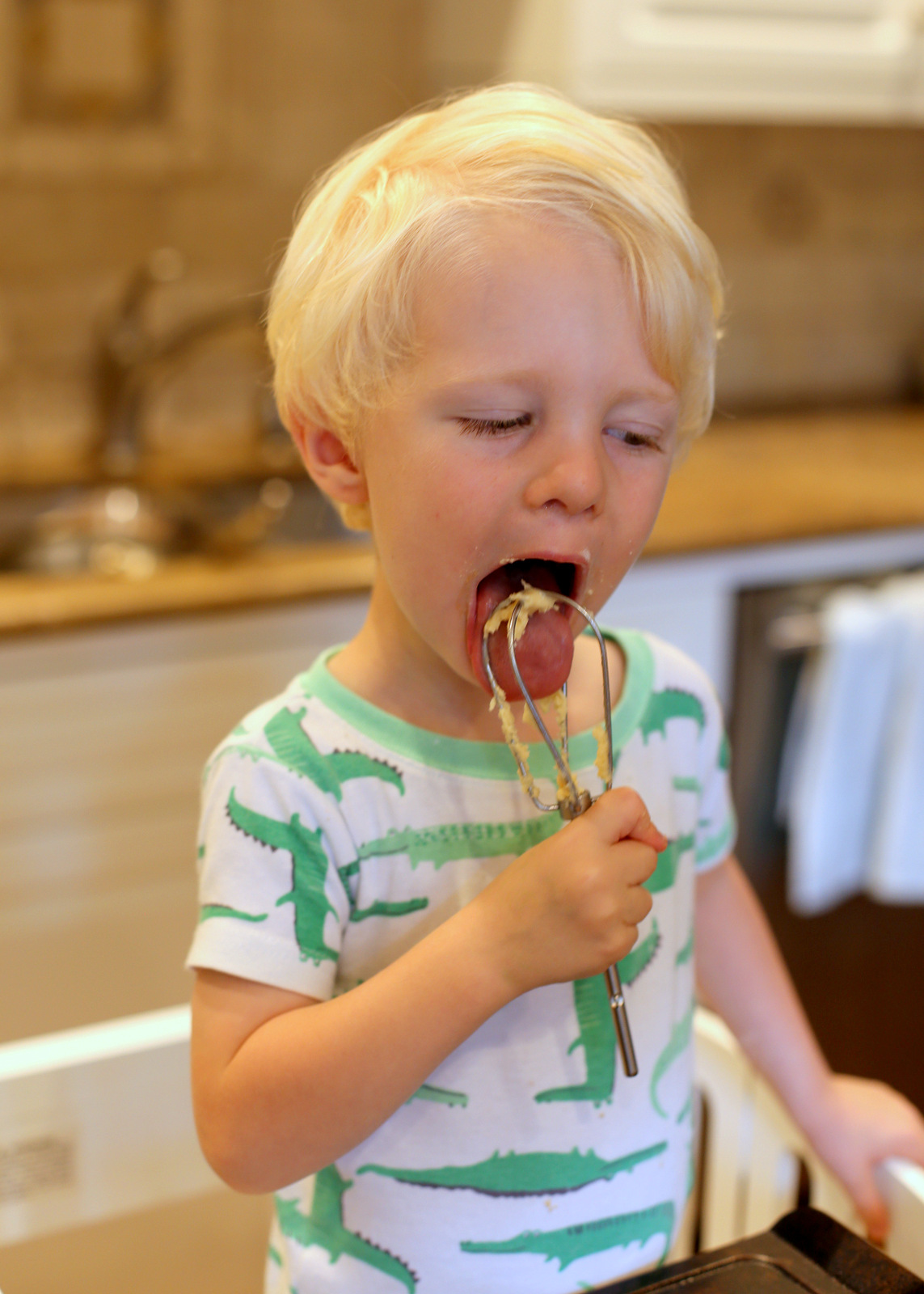Man, Chase is gonna know his way around in a kitchen in no time! Good job Mom! Those cookies look fantastic, and I love that he asks for them by name…so cute.