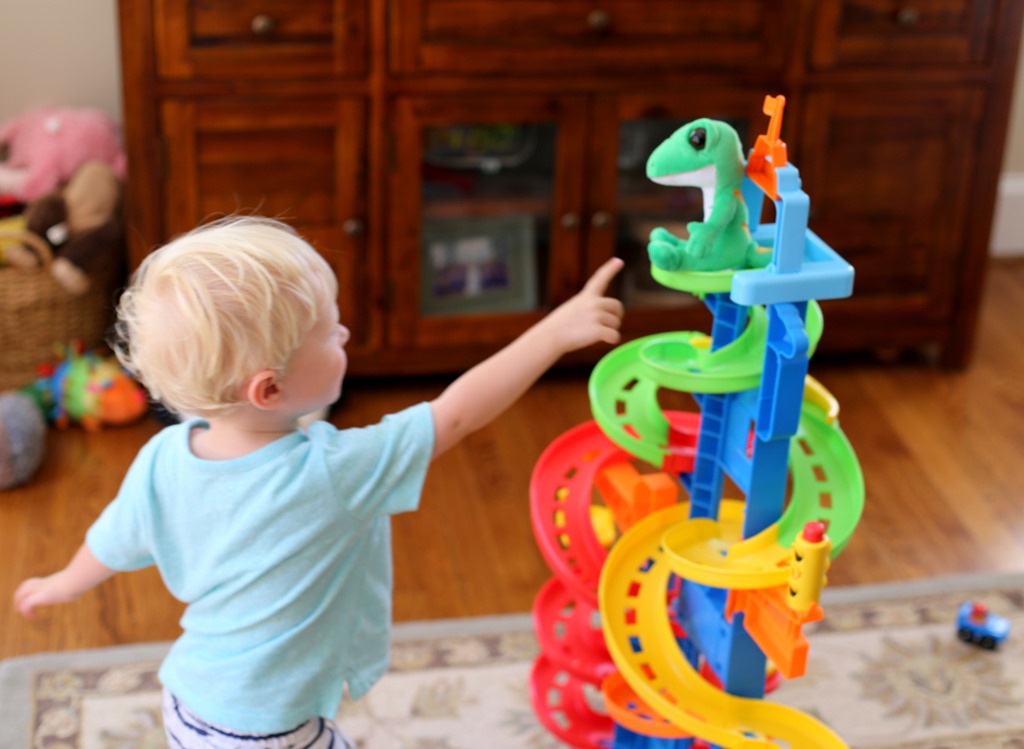I don’t think the kind people at Geico realized the little lizard toy would quickly morph into our early-afternoon entertainment once we arrived back home! After lunch, we played many, many rounds of “find the lizard” and Chase LOVED it. I’d tell him to cover his eyes with his hands and close them tight (whether or not he listened was debatable) while I hid the lizard all over our living room. He had the best time searching for it and I was just happy to see a smile on his face again after a moody morning!