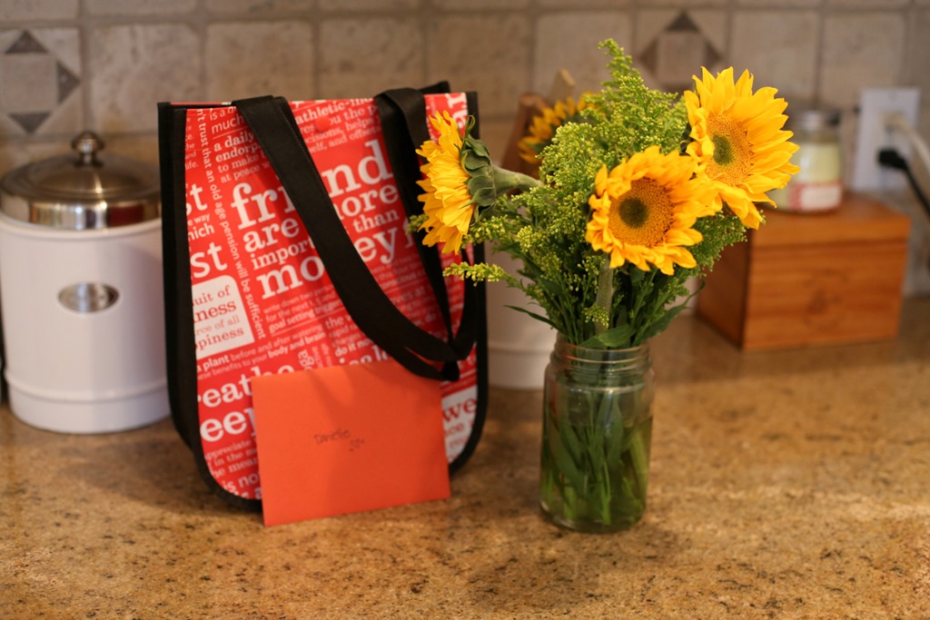 Once Chase was awake, the two of us had to run a couple of errands, so we headed out on a little adventure. My small group has officially been meeting for a year and we wanted to celebrate our incredible group leader, Danielle, at our meeting yesterday evening. I picked up a gift card from all of us and a bouquet of flowers and we each wrote her a little note to thank her for the time and effort she pours into planning group meetings that center around topics that encourage thoughtful, vulnerable, honest and often hysterical conversation.