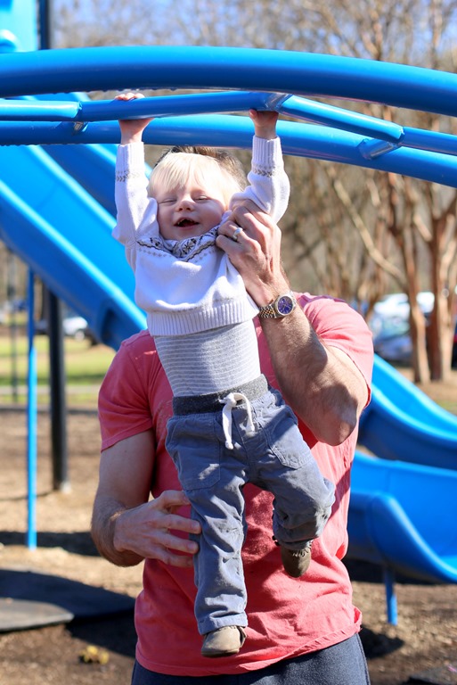 We spent quite a while at the park, bouncing around from the playground equipment to the walking trails around the lake. Freedom Park is apparently the place to walk your dog and Chase had the best time petting all different kinds of “dahs,” including a 205-pound Great Dane. He is fearless around dogs, that’s for sure. We always ask the owners if Chase can pet their dogs first and have to laugh because to Chase “pet your dog” seems to really mean “stand really close to your dog without actually touching it.”