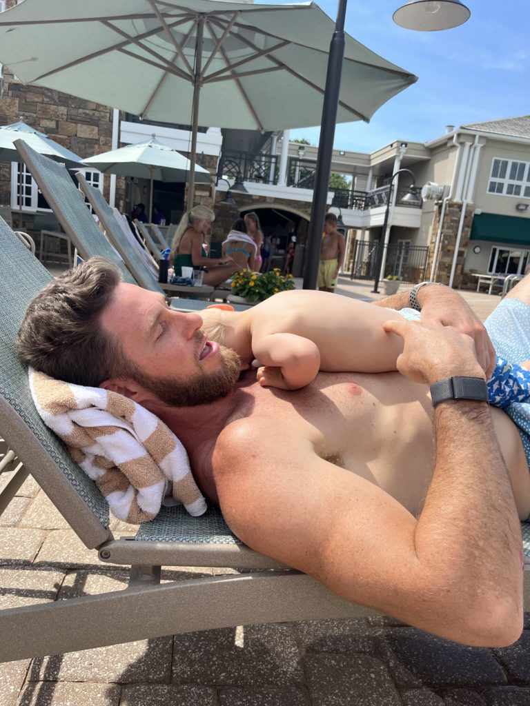 Rhett is 100 percent hands on in the water right now for safety reasons which makes it hard to give the big kids the attention I’d like to at times. It was awesome to be able to play as a family and take turns holding Rhett so we could also play catch and other water games with Chase and Ryder, too.