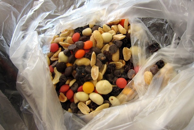 The salad was good, but I was still hungry when I finished, so I bought a bag of trail mix from the bulk bins to eat on the go.