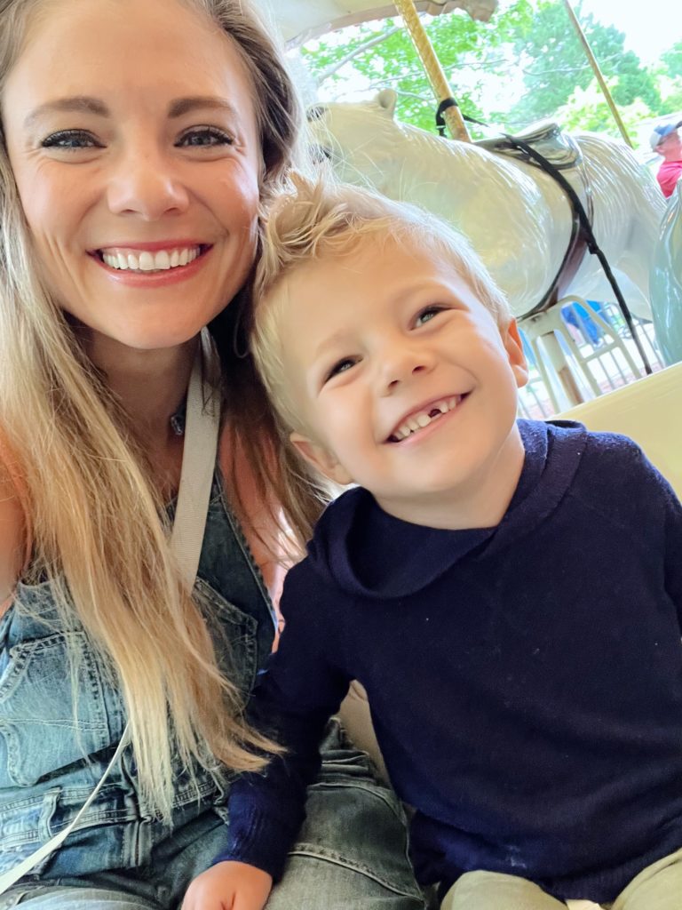 A moment that caught us a little off guard with our usually fearless middle child was the carousel. Ryder picked Saturday to randomly be freaked out by a merry-go-round (ya know, 2 weeks after he happily road one at Dan Nicholas Park) but all was right in his world again when he spotted the bench and asked to ride on it with me.