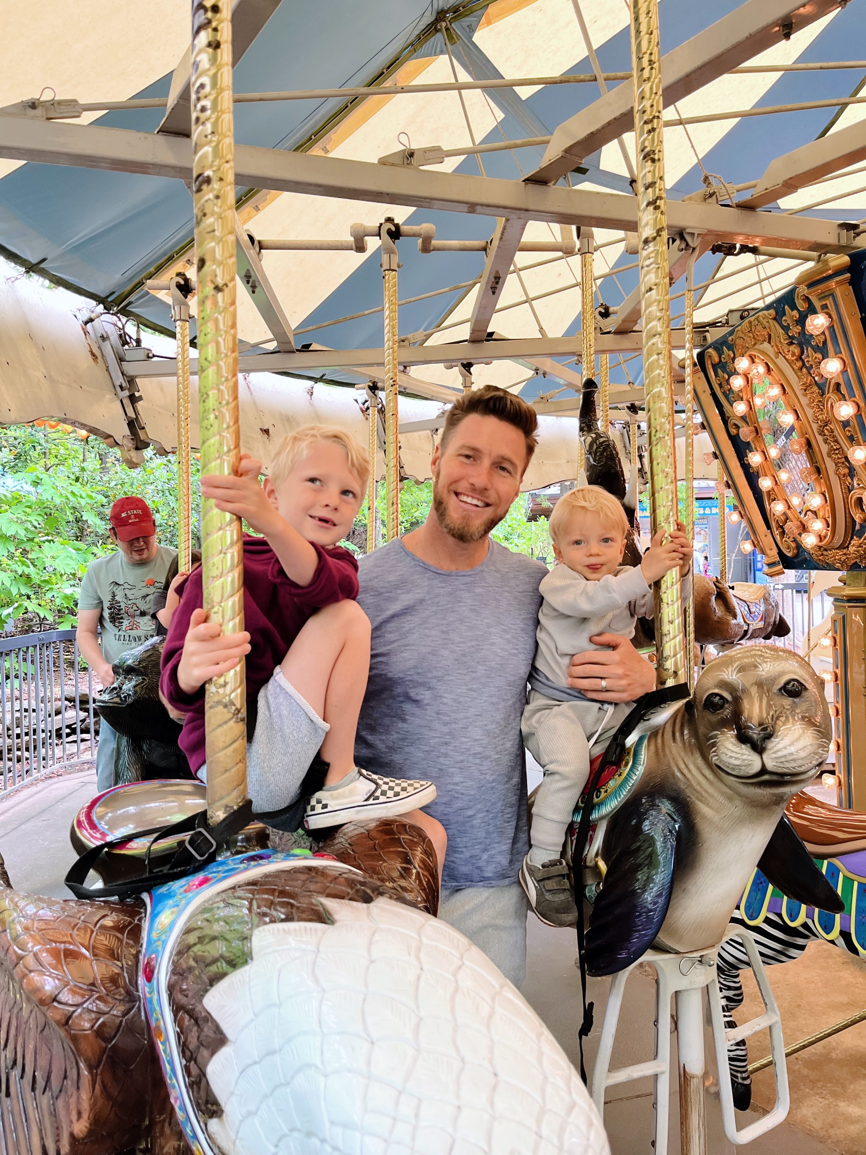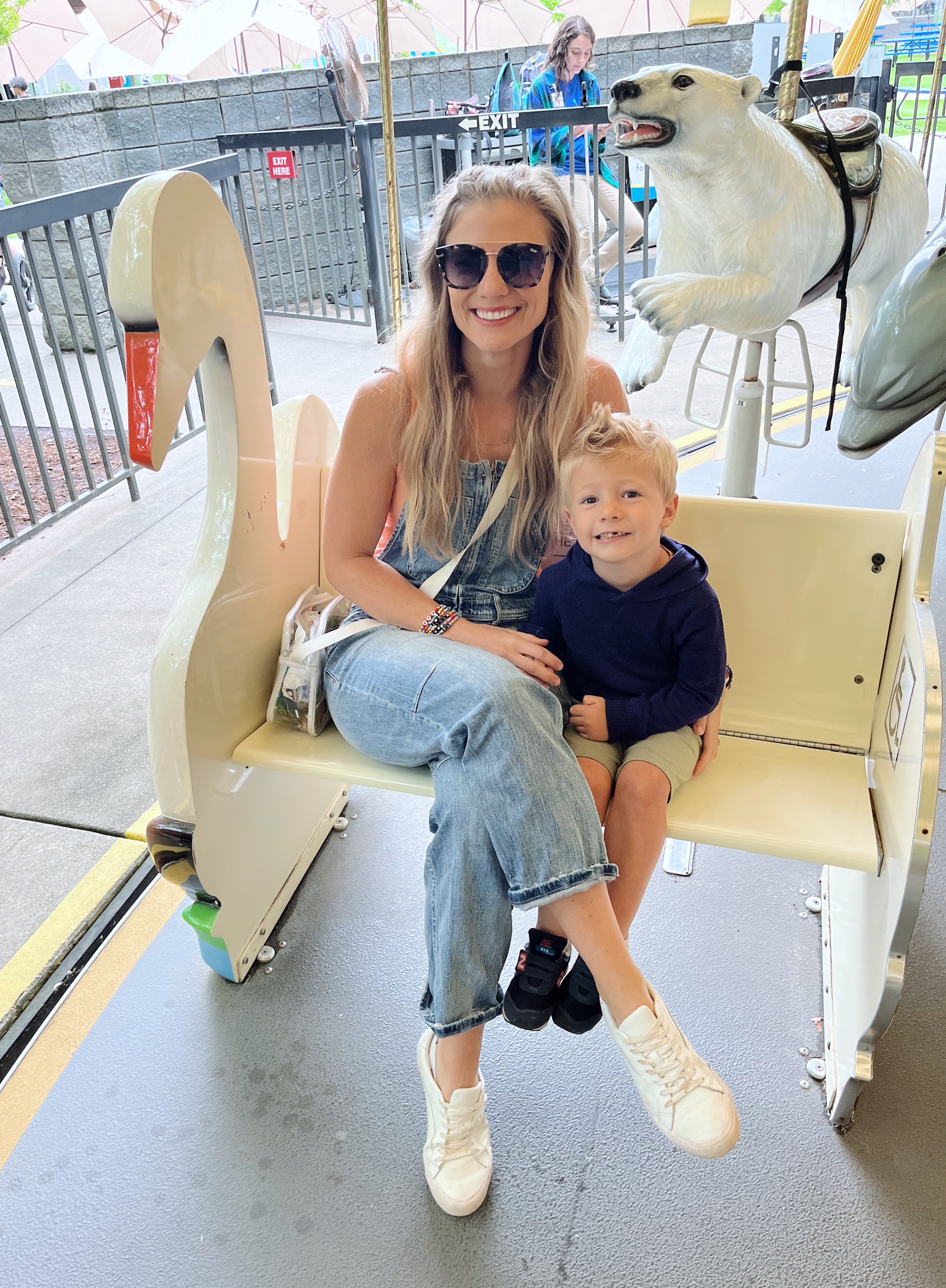 A moment that caught us a little off guard with our usually fearless middle child was the carousel. Ryder picked Saturday to randomly be freaked out by a merry-go-round (ya know, 2 weeks after he happily road one at Dan Nicholas Park) but all was right in his world again when he spotted the bench and asked to ride on it with me.