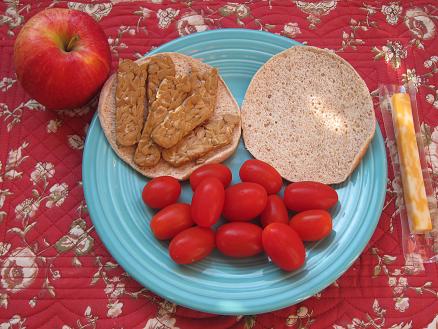 Along with my tempeh sandwich, I enjoyed grape tomatoes, string cheese and an apple.