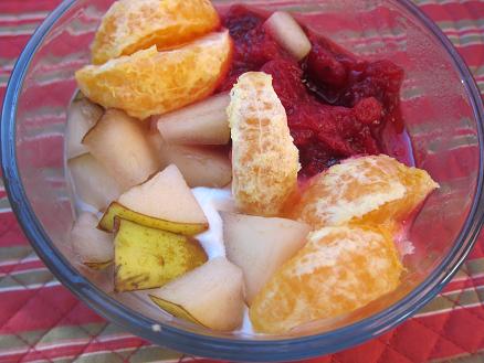 Filed Under: Breakfast Tagged With: Bartlett pear, breakfast, Chobani, sick, tangerine