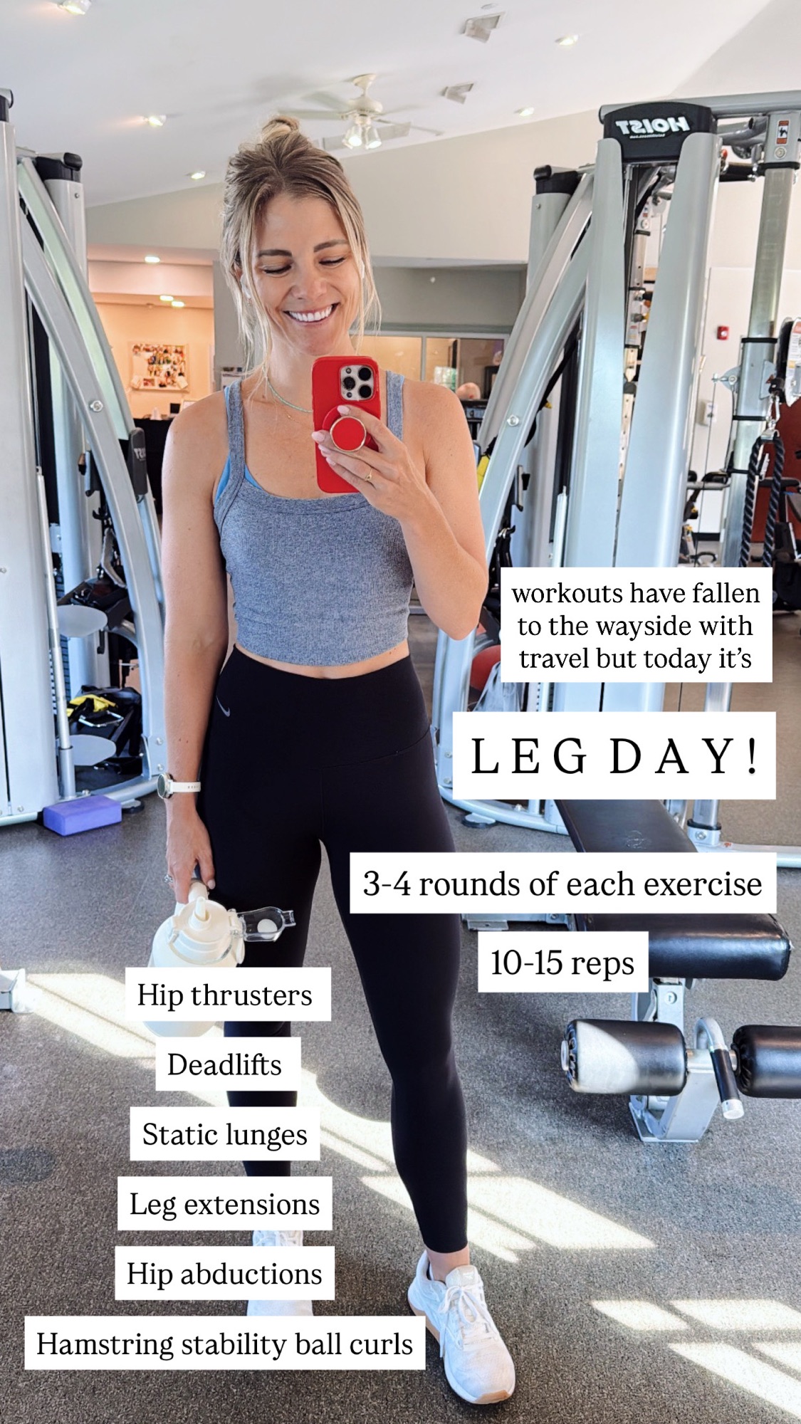 My workouts have fallen on the backburner over the past couple of weeks due to travel (and all summer long, really), so it felt especially nice to make it to the gym for a leg workout to kick off the day.