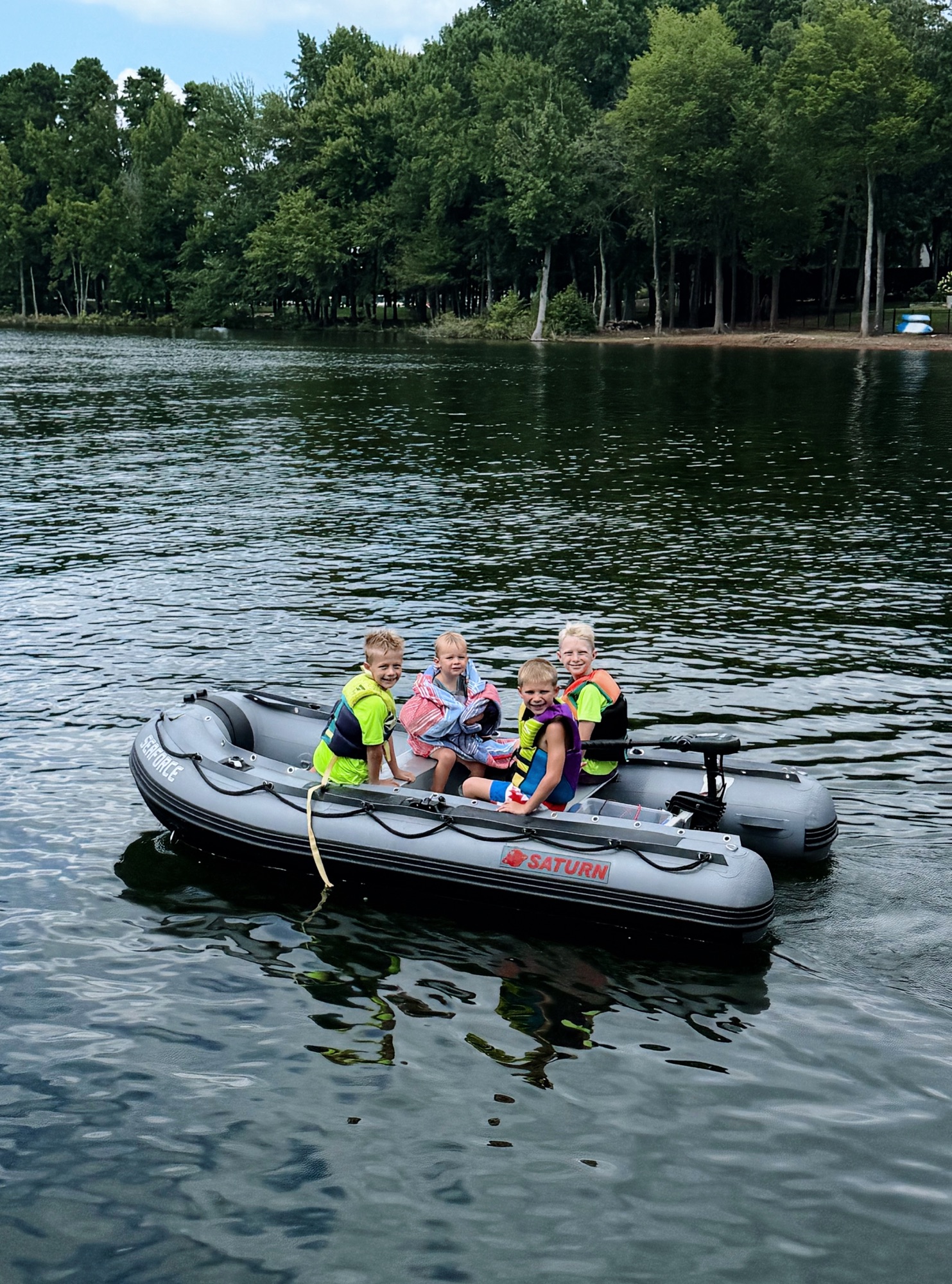 The boys had the absolute best time jumping off their double-decker 18-foot dock, even our fearless 4-year-old!