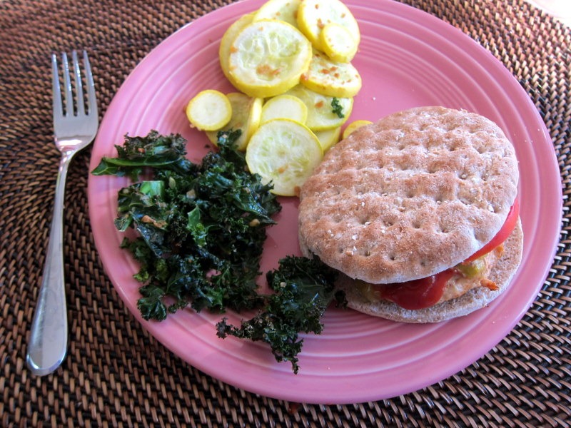 Clearly I was picking at the veggies on my plate while the burgers were cooking, as demonstrated by the sorry-looking portion in the above picture. It’s hard to wait!