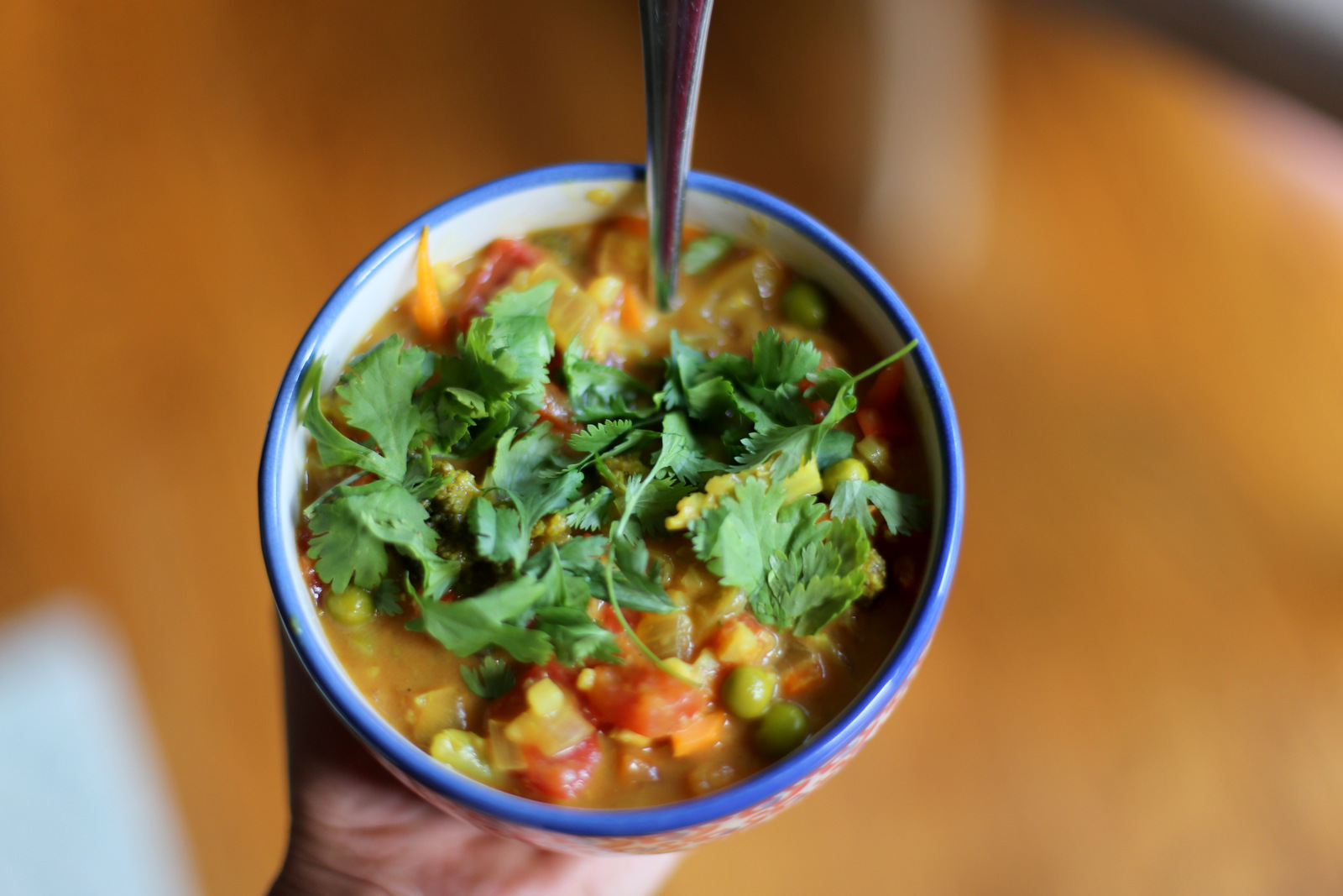 While the boys took their naps (Ryder slept, Chase had “quiet time” with books and toys), I took a shower and did a quick load of laundry because of course Ryder pooped in his reusable swim diaper. I also managed to get some work done on the computer which felt great since I missed my morning work time thanks to an early-to-rise baby! I reheated some of the vegetarian chickpea curry I made for dinner for our family on Monday night, topped it with fresh cilantro and dug in as I worked away.