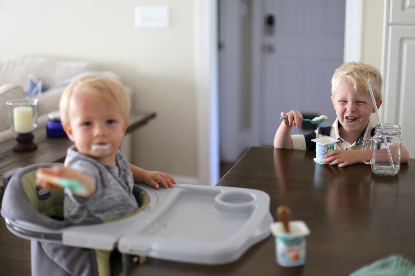 I can usually count on Ryder to sleep in until 6:30 a.m. or so but that wasn’t the case yesterday so he joined me for muffins, coffee and my morning devotional. I made another batch of the zucchini muffins I mentioned in Friday’s post over the weekend and we both ate one for round one of our breakfast. Round two occurred once Chase was up for the day! I got everyone dressed, fed the boys some yogurt, bananas and berries and then we all headed off to the gym.