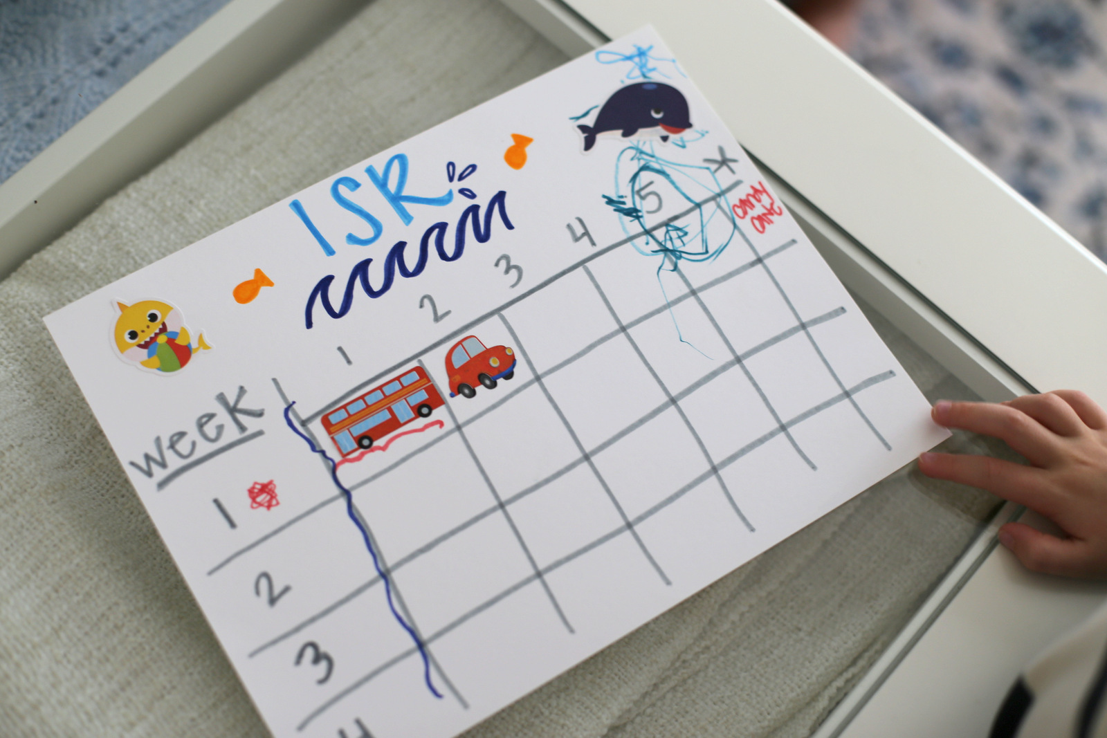 Since I wasn’t sure how intense ISR lessons would be, Chase and I spent some time making a special chart for him on Monday before the lessons began so he gets a sticker after every ISR lesson. Then, at the end of every week, he gets to pick out a small prize. This week he said he wants a candy cane so if you guys know where on earth I can find candy canes in August, please let me know. Ha!