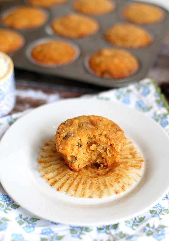 The muffin is incredibly soft and moist but full of texture thanks to the carrots and chopped walnuts. The flavor reminds me of the most delicious carrot cake… The kind that is so perfect that adding icing would only detract from the flavor (and that’s saying something since I’m usually Team Icing all the way in the icing vs. cake debate).