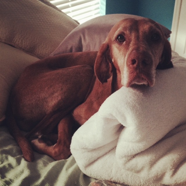 I love rainy days since my pup doesn’t want to do anything but lounge around and snuggle in the blankets. 🙂