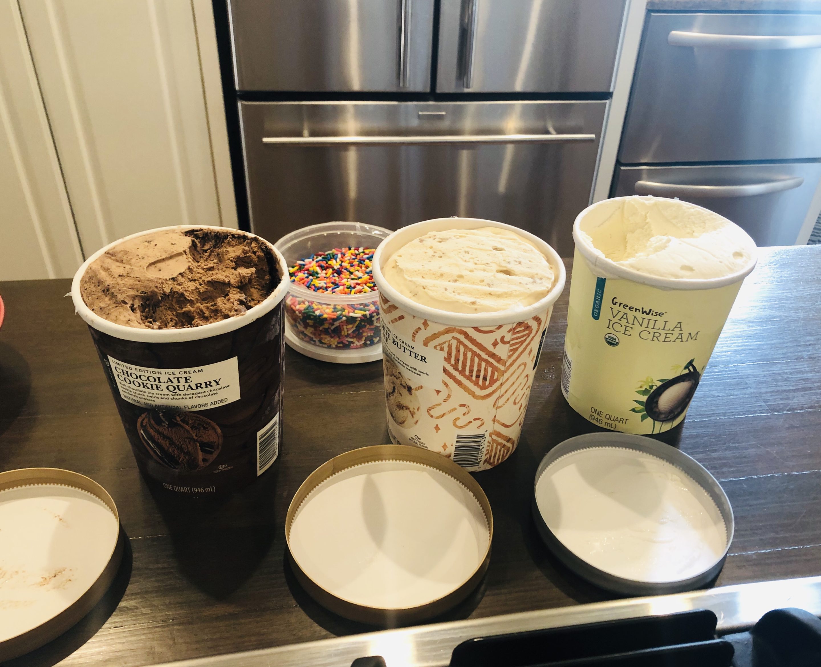 Greg and Ben share our intense love for ice cream so we had to wrap up our cookout with a little ice cream buffet! Between the four of us and Chase, we demolished all three containers in one sitting and I wish I could say that was a challenge. Ha!