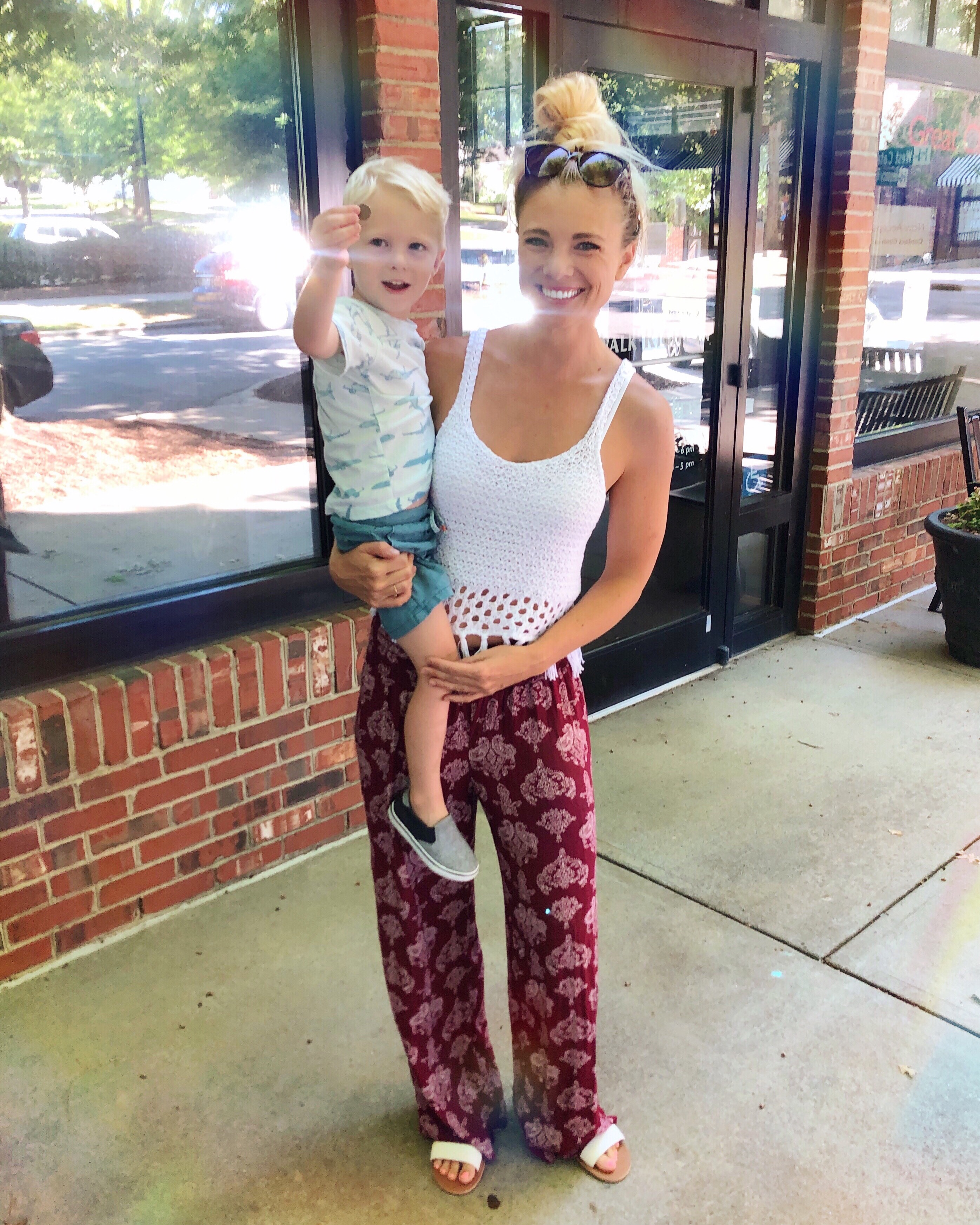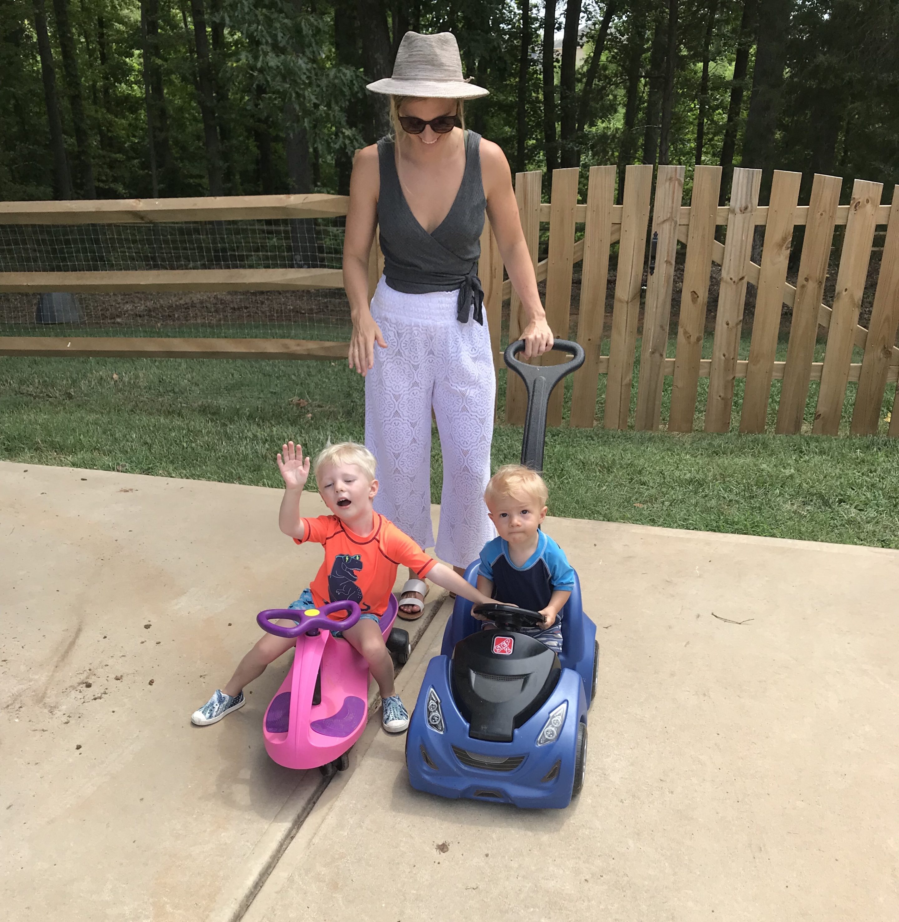 We wore our bathing suits and cover ups and spent all day at their place. The boys were lovin’ life and we enjoyed the time with our friends, too!